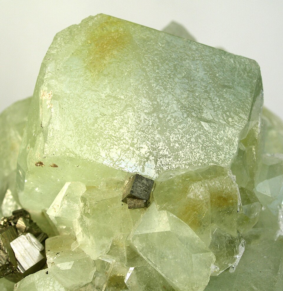 Плотный красивый коллекционный минерал, чаще светлый, желтоватый или зеленоватый в прожилках и зернах.